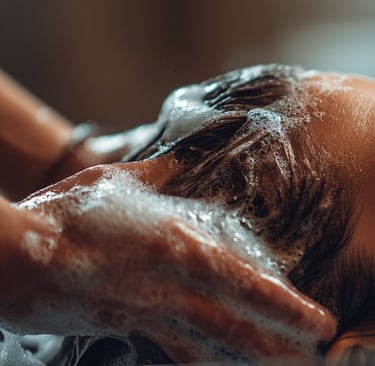 يُعدّ هذا الجزء الأهم في تجربة سبا الشعر، إذ يمنح شعركِ كثافةً وانتعاشًا فوريين، وهو أيضًا الجزء الذي نغفله كثيرًا في روتين العناية بالشعر. يُخطئ الكثيرون حين يظنون أن القشرة ناتجة عن الجفاف، فيبالغون في ترطيب فروة الرأس باستخدام الأقنعة الكثيفة، بينما يكون الحلّ في الواقع تنظيفًا أعمق وتقشيرًا أوضح لفروة الرأس.