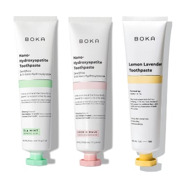أولاً، معجون الأسنان هذا، الذي يحل محل الفلورايد بمكون يسمى نانو هيدروكسيباتيت (n-Ha) والذي كان المعيار الذهبي في طب الأسنان الياباني لعقود من الزمن: فهو يزيل البلاك، ويقلل من حساسية الأسنان، ويعمل على إعادة تمعدن الأسنان. علاوة على ذلك، فإن معجون الأسنان هذا خالٍ من البارابين وSLS والنكهات الاصطناعية، وهو منكهة بشكل خفيف: اختر بين معجون بالنعناع والشاي الأخضر والهيل وآخر بنكهة ليمون بوسيتانو والخزامى.